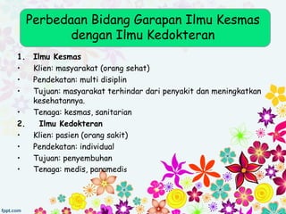 Pengertian ilmu pengetahuan secara umum dapat diartikan sebagai cabang ilmu yang mempelajari tentang ilmu pengetahuan alam. Kesehatan masyarakat Public Health adalah ilmu dan seni yang mencegah penyakit memperpanjang hidup meningkatkan kesehatan fisik. Howard Bernard menyatakan bahwa ilmu kesehatan.